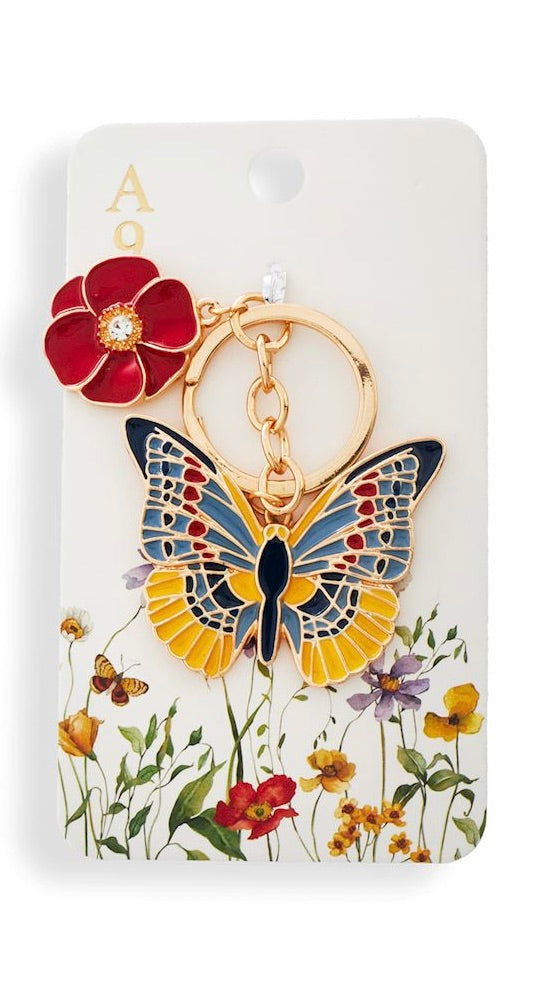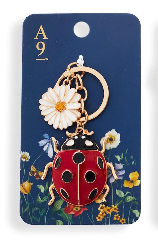 Store all your keys in one place and easily find them in your purse with this stunning Nature Charms Keychain. Features a gold metal keychain with two colorful charms, one flower and one insect, with realistic detailing. Available in 2 assorted designs: Ladybug With White Flower, and Butterfly With Red Flower. Comes on a paper backer card (3x4) ready for gifting. 24 pieces per acrylic displayer (6.1x4.8x9.7) at no extra cost. Alloy, Paper, Acrylic.