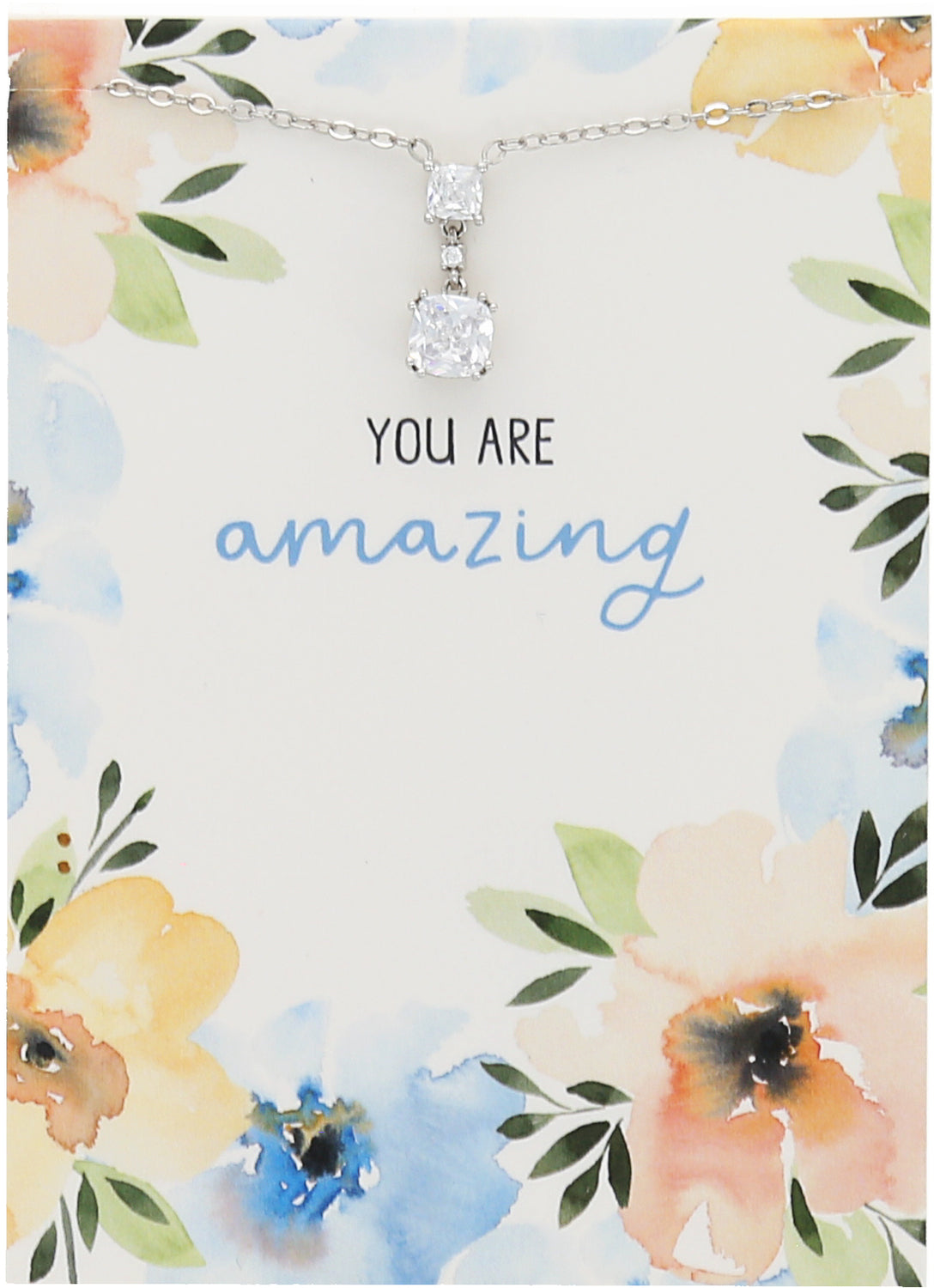 This adjustable 16.5" - 18.5" necklace features a free-moving triple drop pendant on a white gold-plated brass necklace chain.