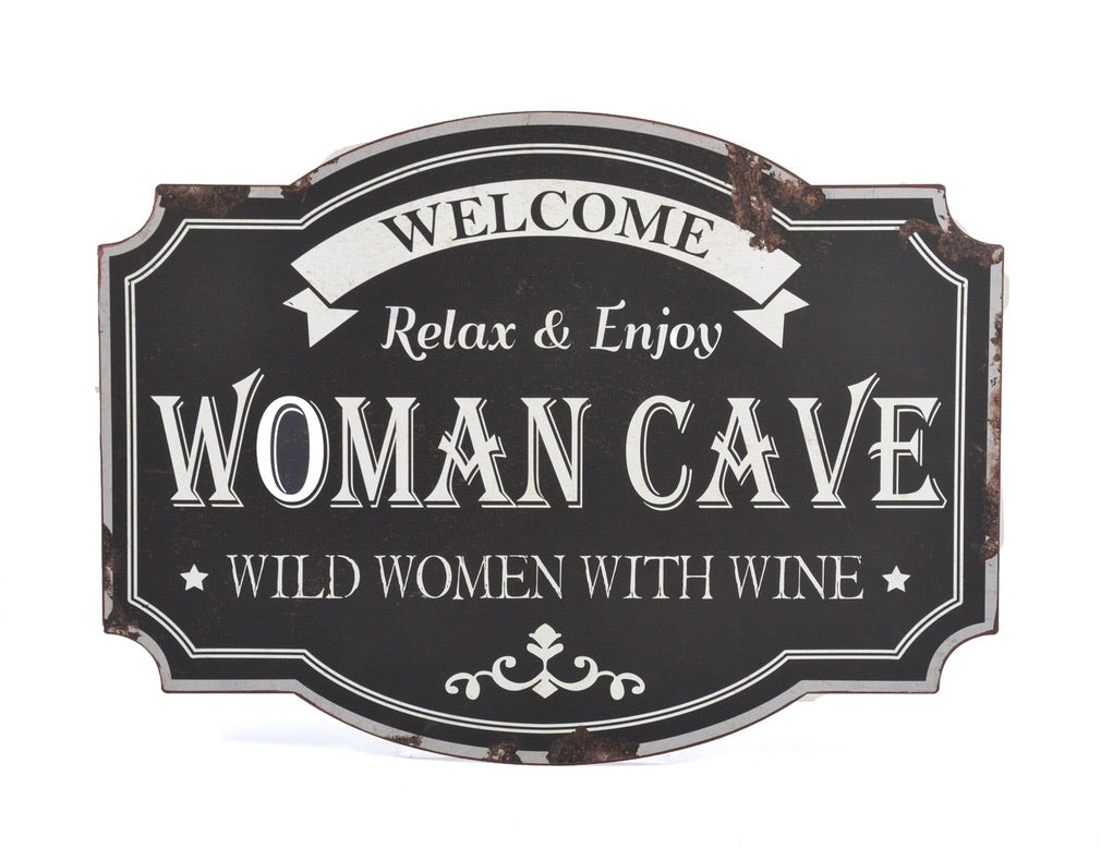 METAL SIGN-WELCOME RELAX & ENJOY WOMEN CAVE WILD WOMEN WITH WINE.
