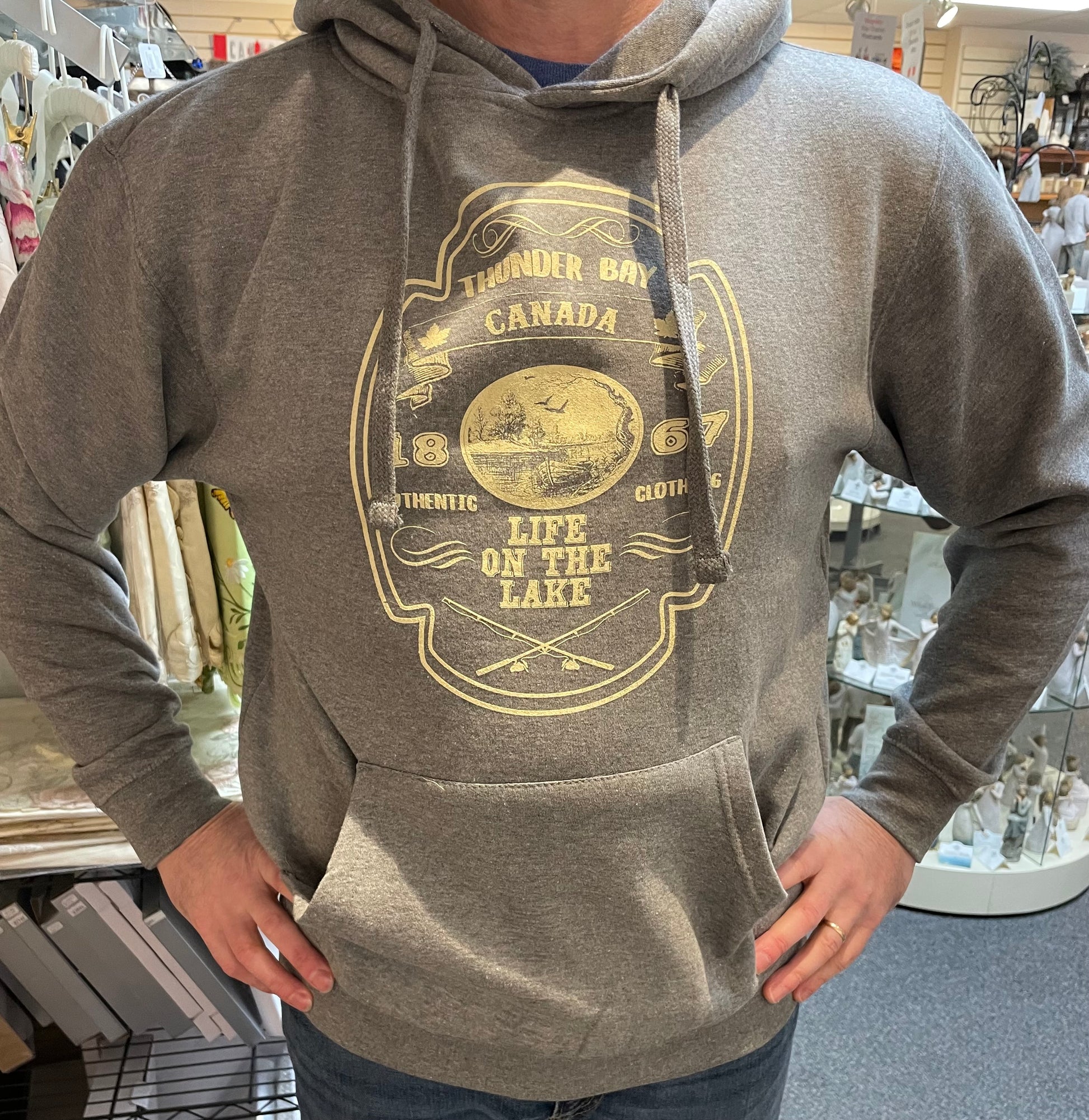 Souvenir Clothing - Basic Hoodie - Thunder Bay, Canada, Life on the Lake - Graphite Heather
