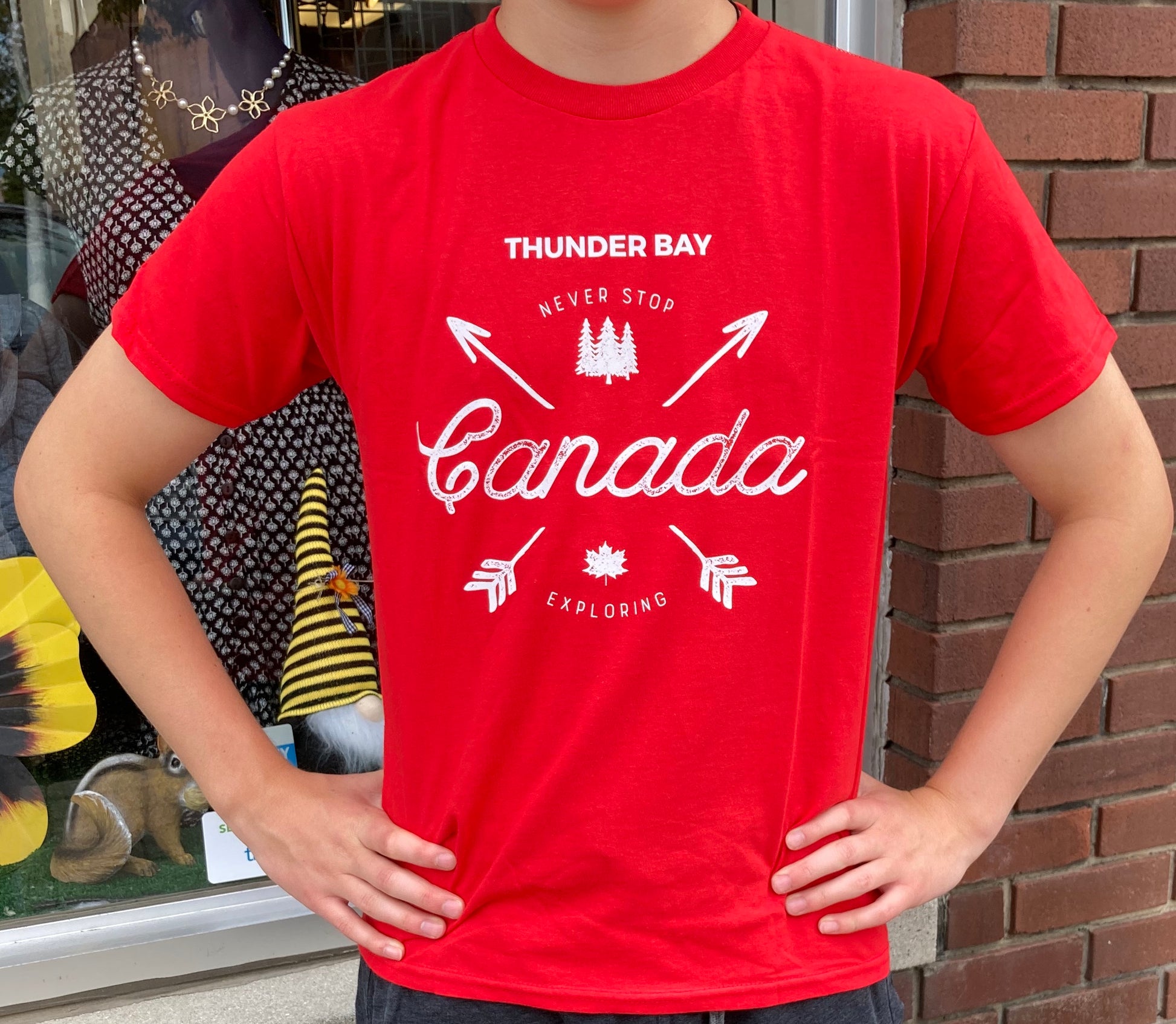 Souvenir Clothing - Youth T-Shirt - Never Stop Exploring - Thunder Bay, Canada - Red